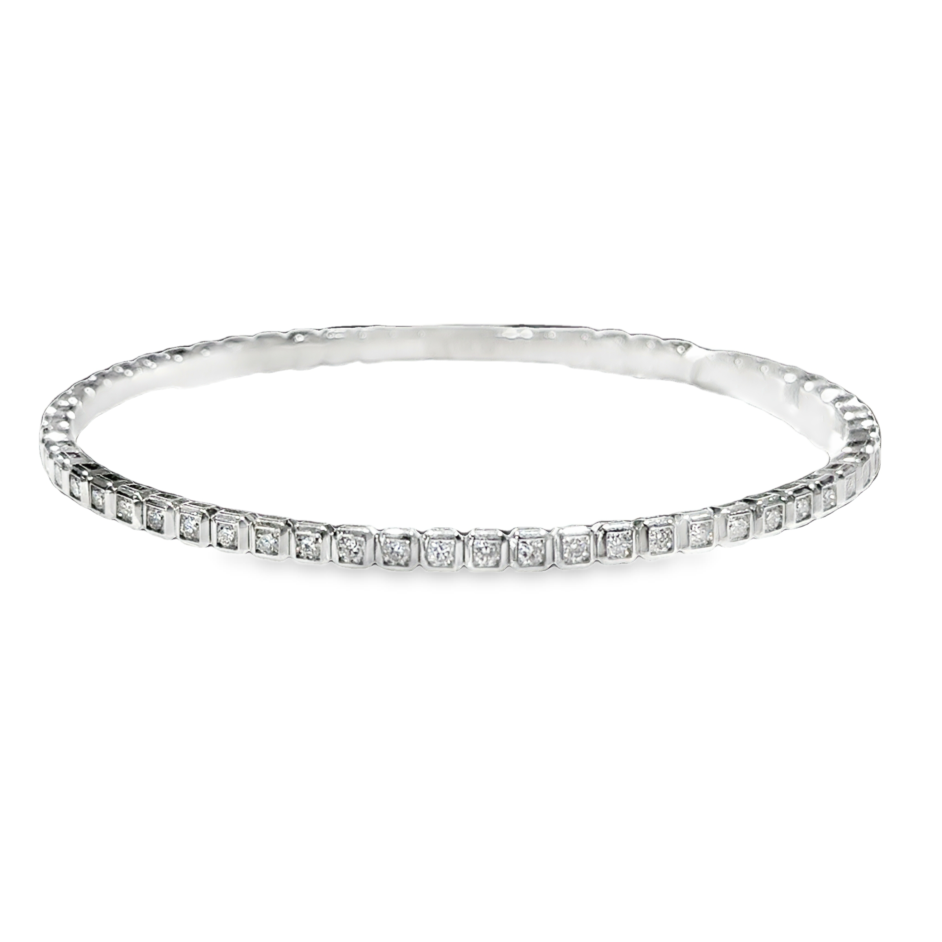 14K White Gold Diamond Square Pattern Flexi Bangle Bracelet