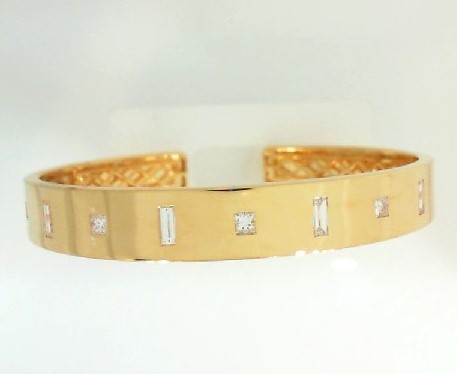 1(480) 421-9688Baguette & Princess Diamond 18K Yellow Gold Hinge Bangle Bracelet
