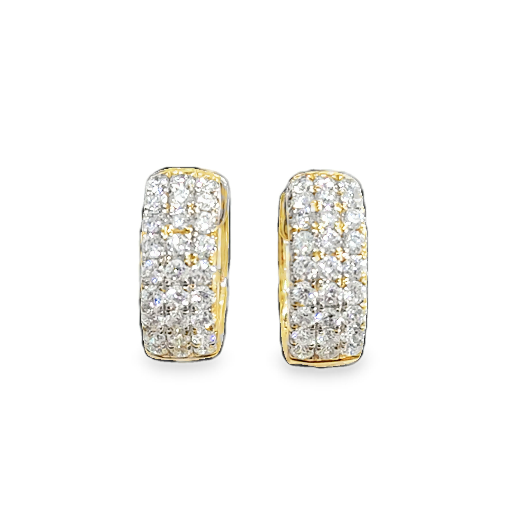 1(480) 421-968814K Yellow Gold Triple Row Diamond Pave Hoop Earrings